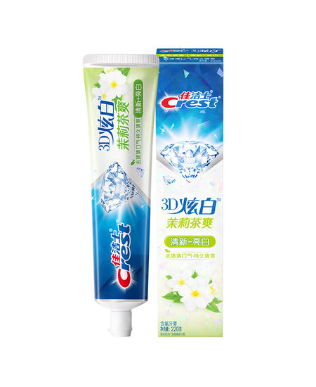 佳洁士3D炫白茉莉茶爽牙膏美白去牙渍含氟防蛀220g京东自营新老包装混发