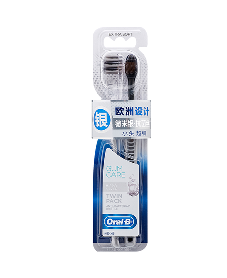 欧乐B微米银牙刷专业护龈抗菌超细刷毛软毛2支京东自营新旧包装随机