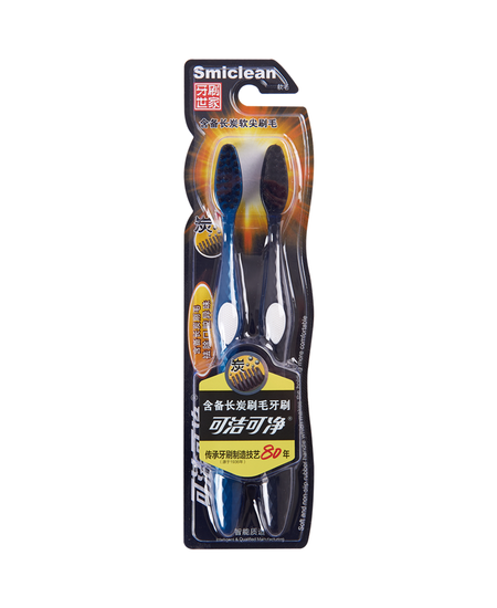 可洁可净炭丝能量软毛牙刷 备长炭刷头 深层清洁口腔 2支家庭装