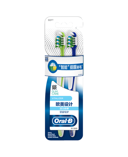 欧乐B活力按摩成人软毛牙刷牙龈专护小宽头按摩牙龈双支装颜色随机