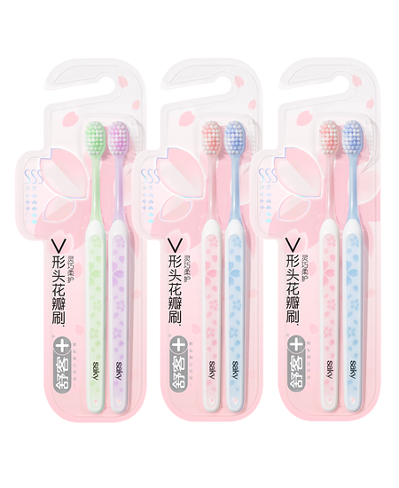 极简生活热销进口刷丝细密小头高效清洁成人软毛牙刷2支(颜色款式随机)