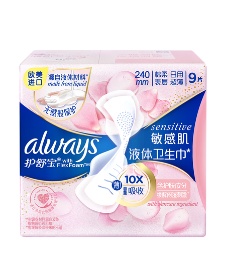 护舒宝敏感肌液体卫生巾日用240mm9片姨妈巾护肤款试用京东自营官方旗舰