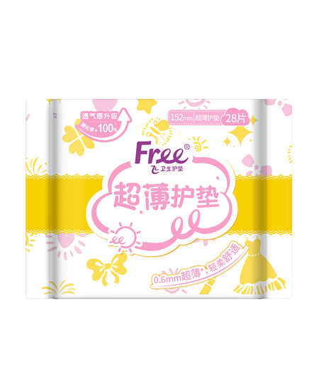FREE京东自营超薄触感 0.6mm无感薄棉柔护垫卫生巾152mm*28片京东超市