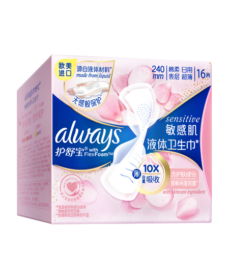 护舒宝敏感肌液体卫生巾日用240mm16片姨妈巾护肤款京东自营官方旗舰