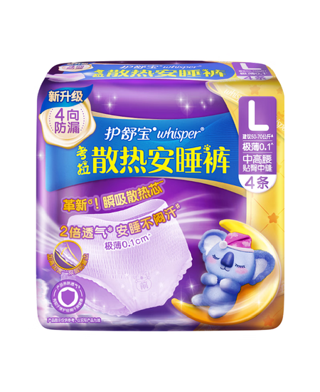护舒宝考拉散热安睡裤L大码4条裤型卫生巾安心裤姨妈巾夜安裤京东自营