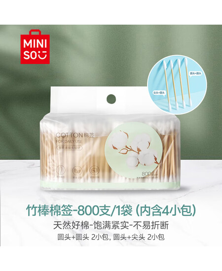 名创优品(MINISO)棉签便携装棉棒化妆掏耳棉花棒棉花签圆头+尖头双头设计200支*4袋