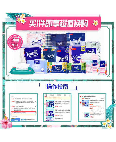 得宝(Tempo) 卸妆湿巾湿纸巾 盒装(5包x12片) 湿巾小包湿巾纸 含润肤卸妆成分