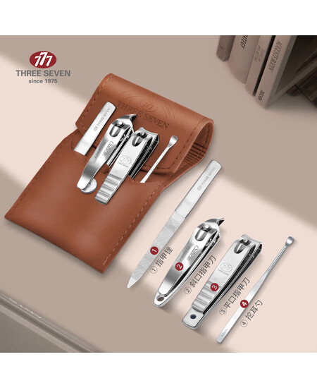 777(THREE SEVEN)指甲套装工具进口三七指甲剪指甲钳斜口指甲刀全套4件套8002棕