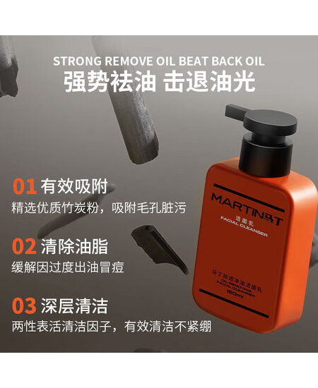 马丁竹炭控油洗面奶150ml 清爽深层净肤洁面乳膏护肤品