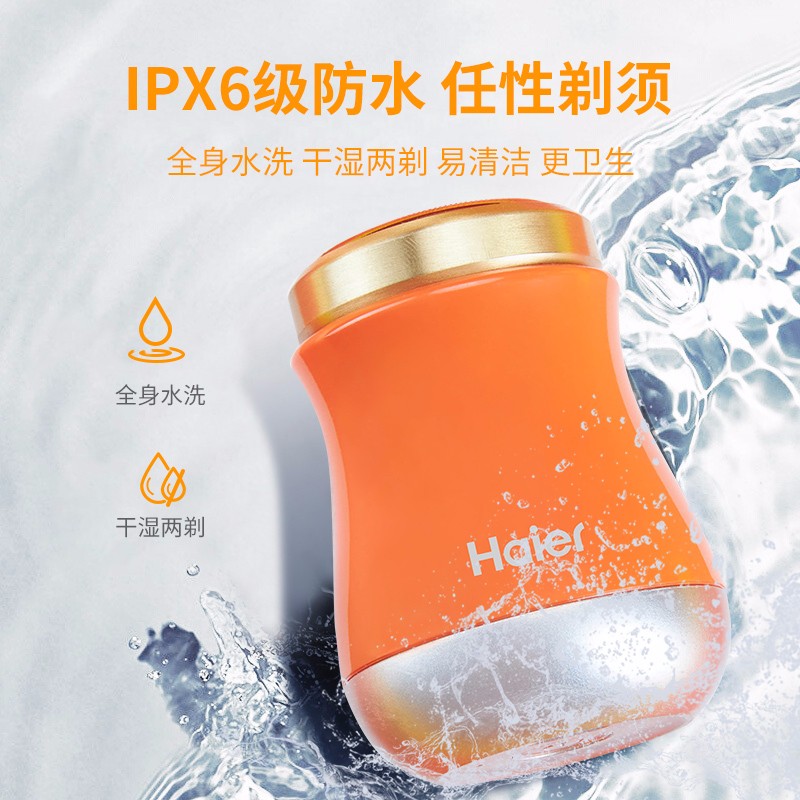 海尔(haier) 便携式剃须刀小蛮腰电动刮胡刀礼物新升级全身水洗出差旅行家用男士迷你胡须刀 HSM1-2241橙色 全身水洗