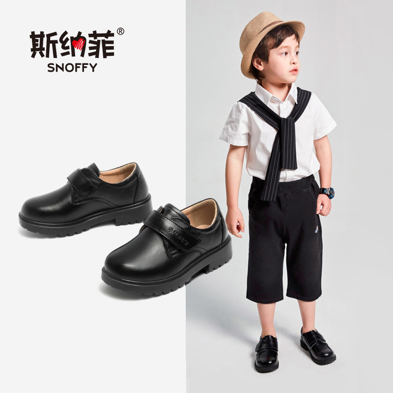 斯纳菲童鞋男童皮鞋春季新款学生表演鞋魔术贴真皮儿童单鞋男 18818