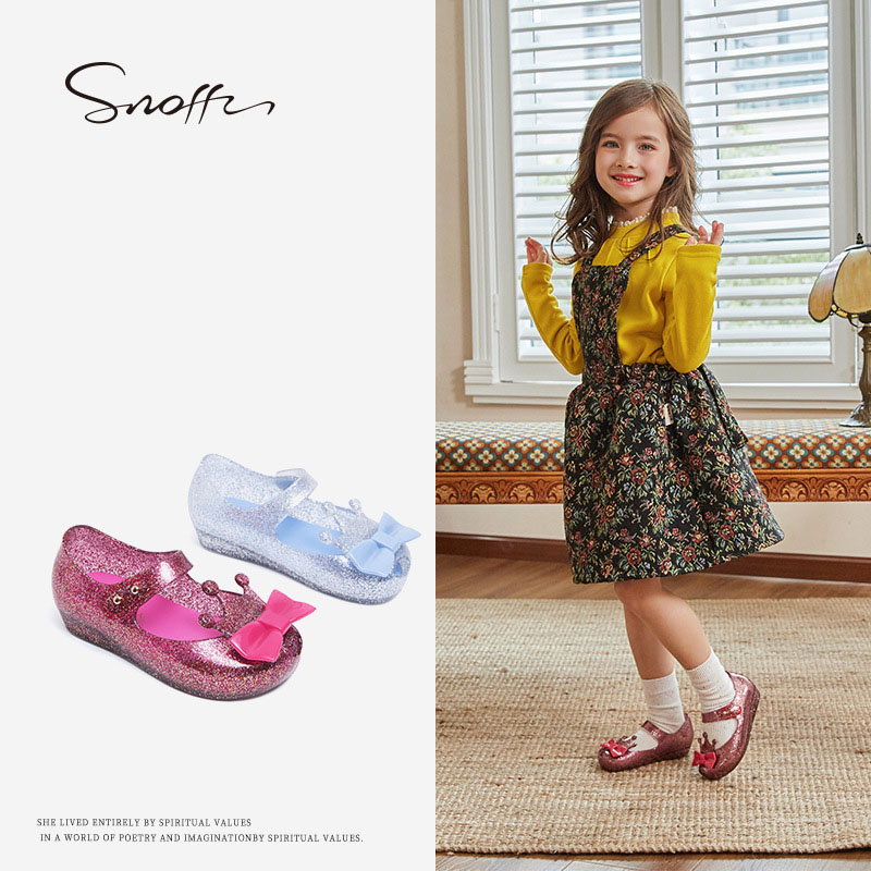 斯纳菲儿童皮鞋女公主鞋软底时尚蝴蝶结女童春季新款洋气休闲果冻鞋 20608