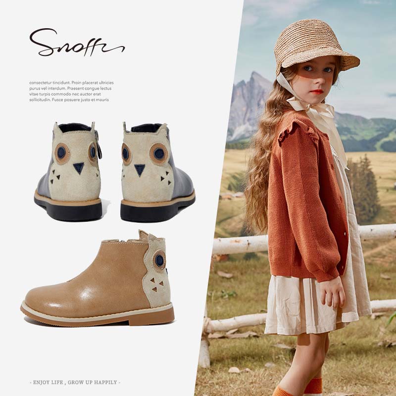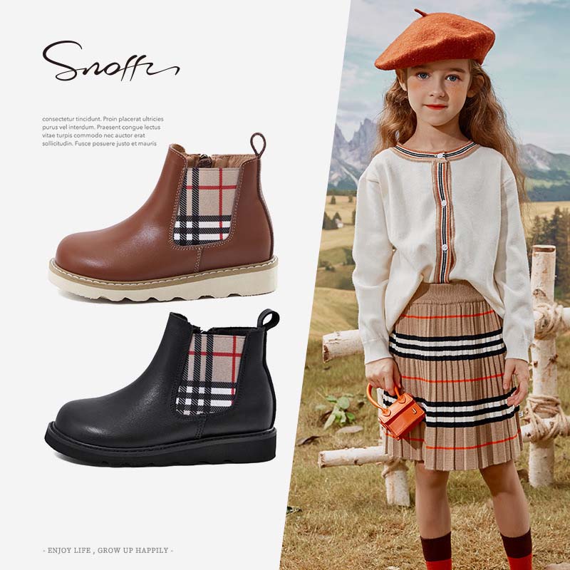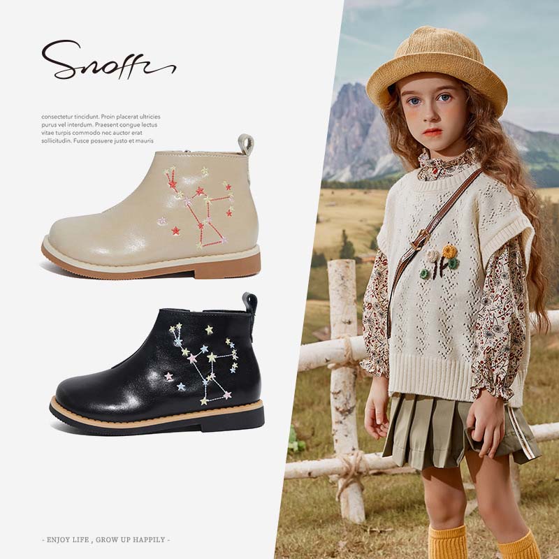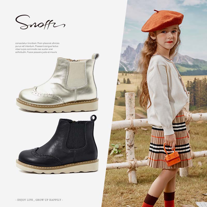 斯纳菲儿童马丁靴真皮女童靴小孩女童靴子秋季小童宝宝短靴英伦风209103