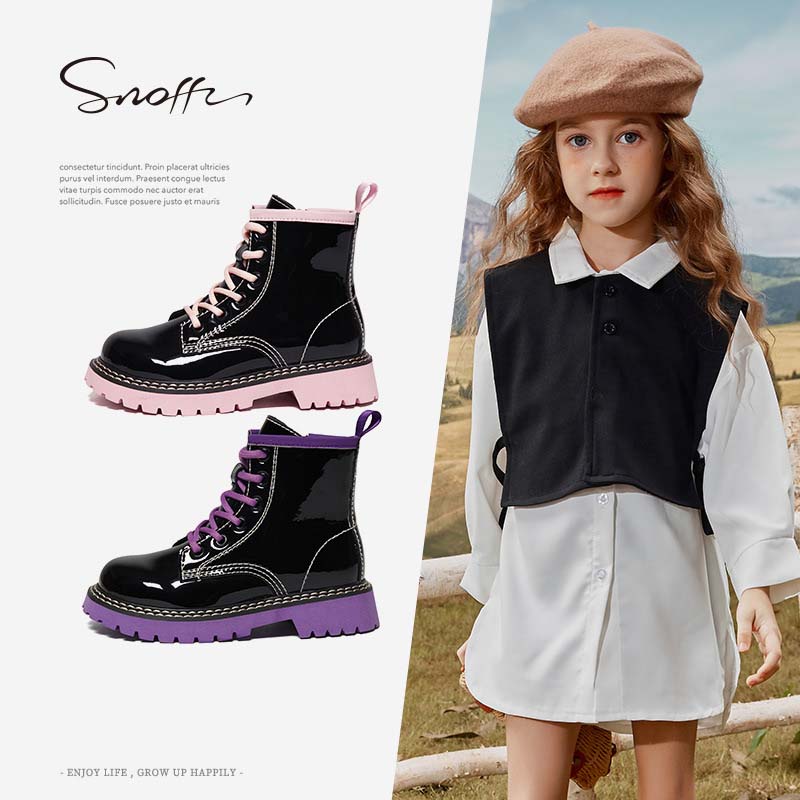 斯纳菲女童鞋马丁靴儿童靴子年新款秋冬款小女孩皮靴公主短靴 209533