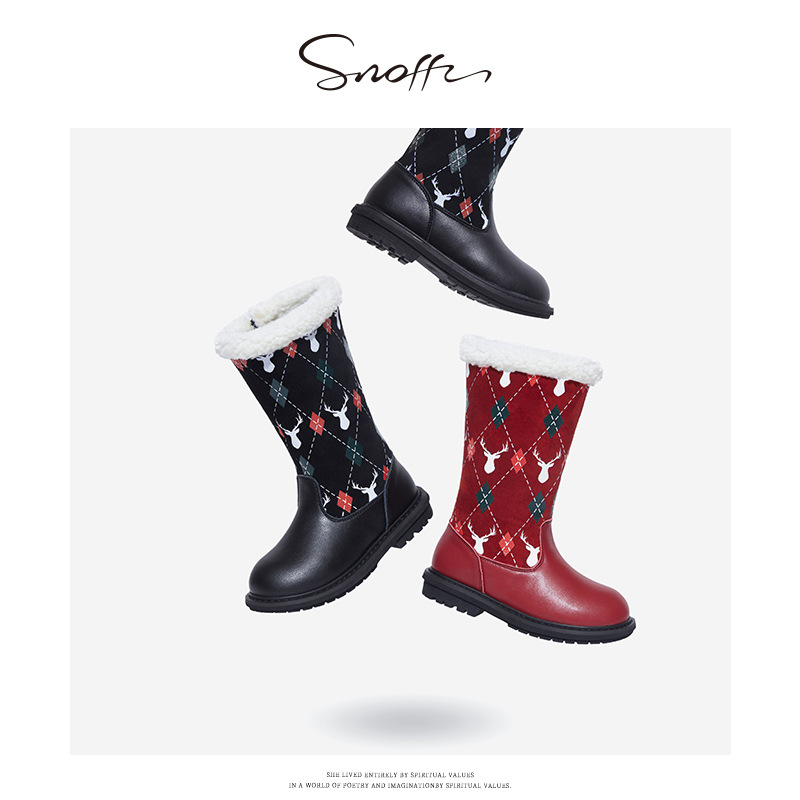 斯纳菲女童靴子秋冬新款棉靴雪地靴中筒皮靴儿童靴小公主皮靴209207