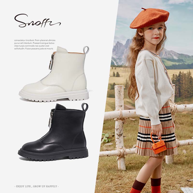 斯纳菲秋冬季新款童鞋女童马丁靴儿童靴子软底皮靴小女孩短靴 209504