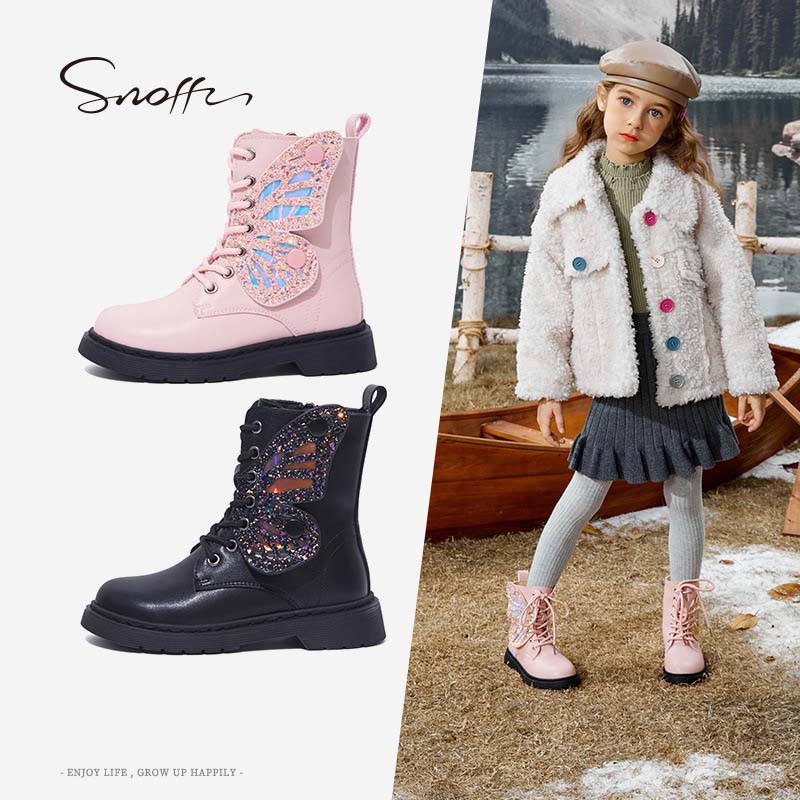 斯纳菲女童靴子年新款秋冬季时尚儿童鞋女孩短靴小公主鞋棉靴 209122