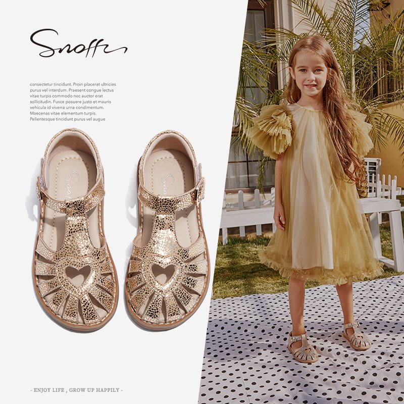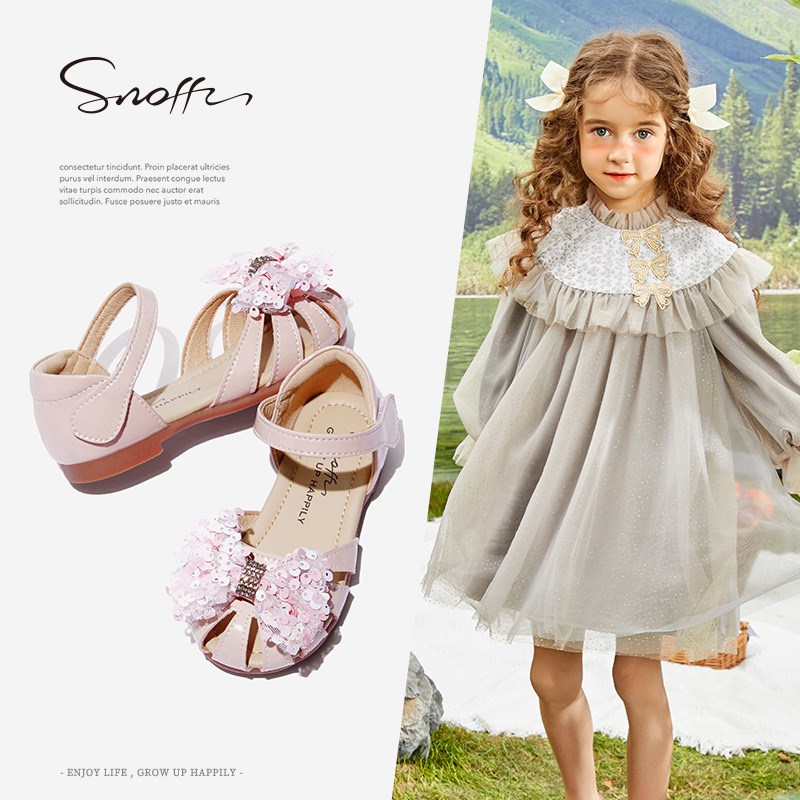 Snoffy/斯纳菲儿童鞋女童凉鞋夏季鞋子女孩小公主鞋轻便软底包头217213