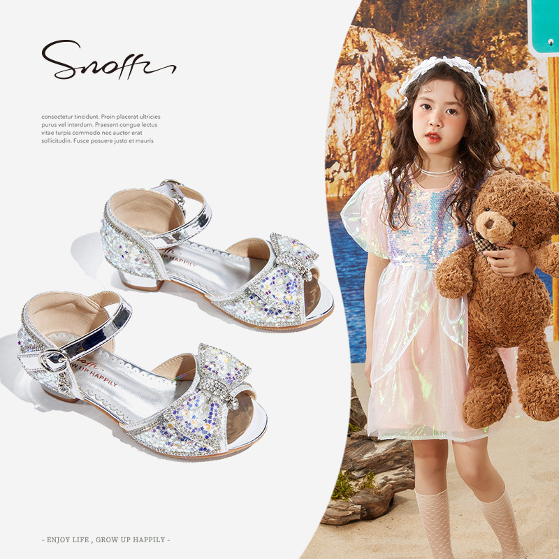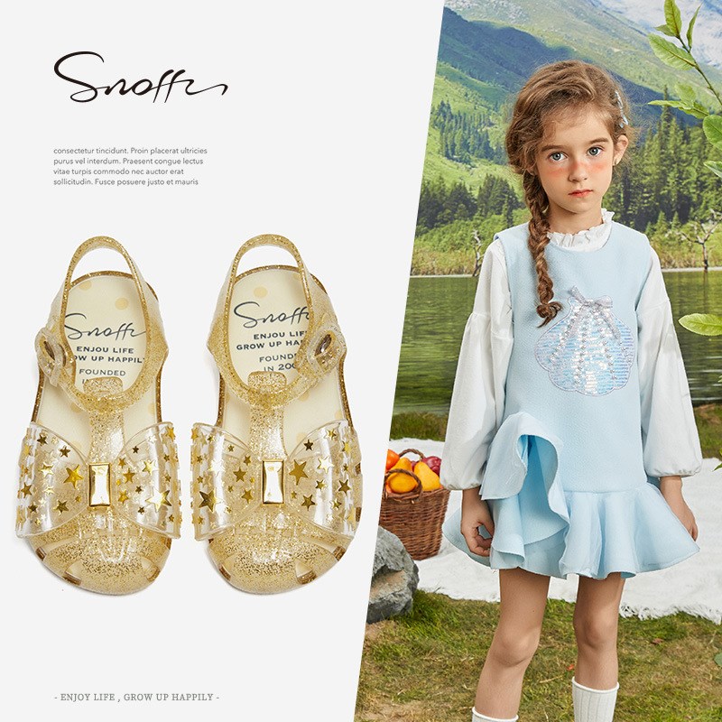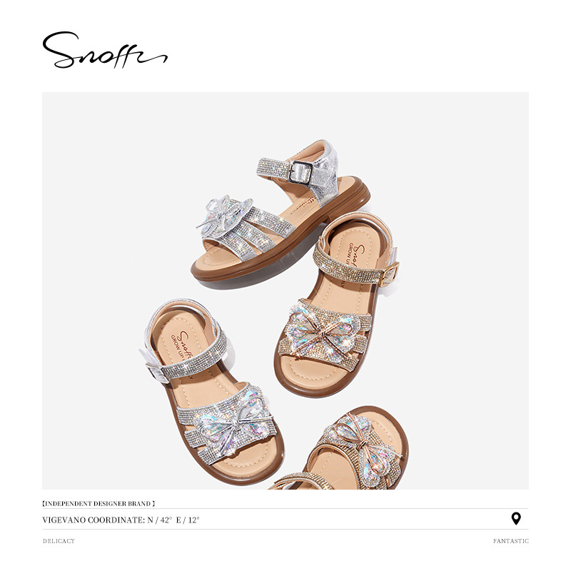 Snoffy斯纳菲女童凉鞋夏季新款小公主水晶鞋儿童软底露趾鞋227140