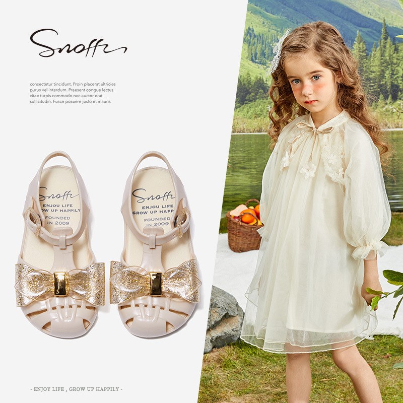 斯纳菲春夏季女童鞋子小宝宝凉鞋儿童果冻鞋蝴蝶结公主鞋217220