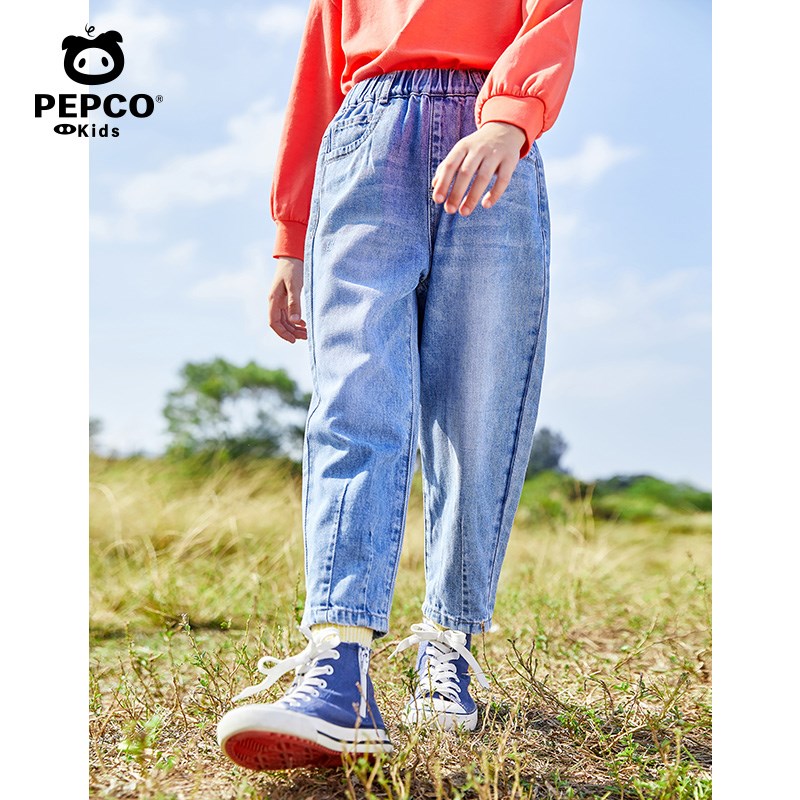 小猪班纳童装女童浅蓝牛仔裤春季新款中大童长裤宽松百搭时尚裤子121130425