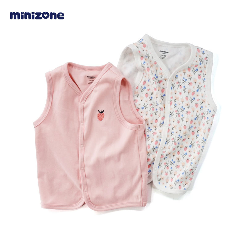 minizone儿童外套春秋男女童纯棉背心马甲两件套装2-5-7岁外出背心开衫潮 M1316