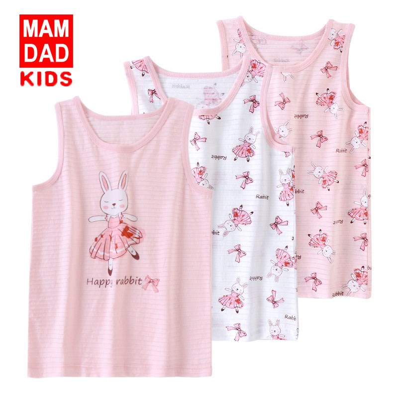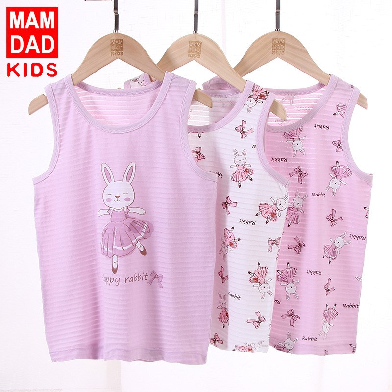 KIDS MAM&DAD 爸妈亲儿童竹节棉背心3件装夏天无袖背心女宝宝背心现货批 宝宝背心夏00116