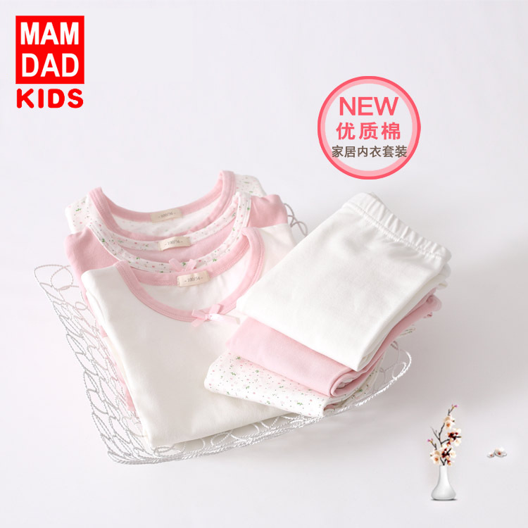 KIDS MAM&DAD 爸妈亲儿童秋衣秋裤套装小孩睡衣睡裤 宝宝内衣套装新款宝宝家居服60639