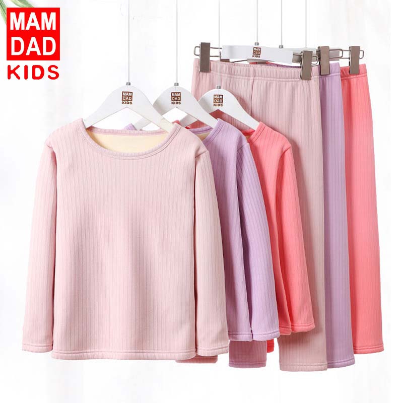 KIDS MAM&DAD 爸妈亲儿童加绒内衣套装秋冬加厚保暖 男童女童秋衣秋裤秋冬保暖衣套装86292( 00240)