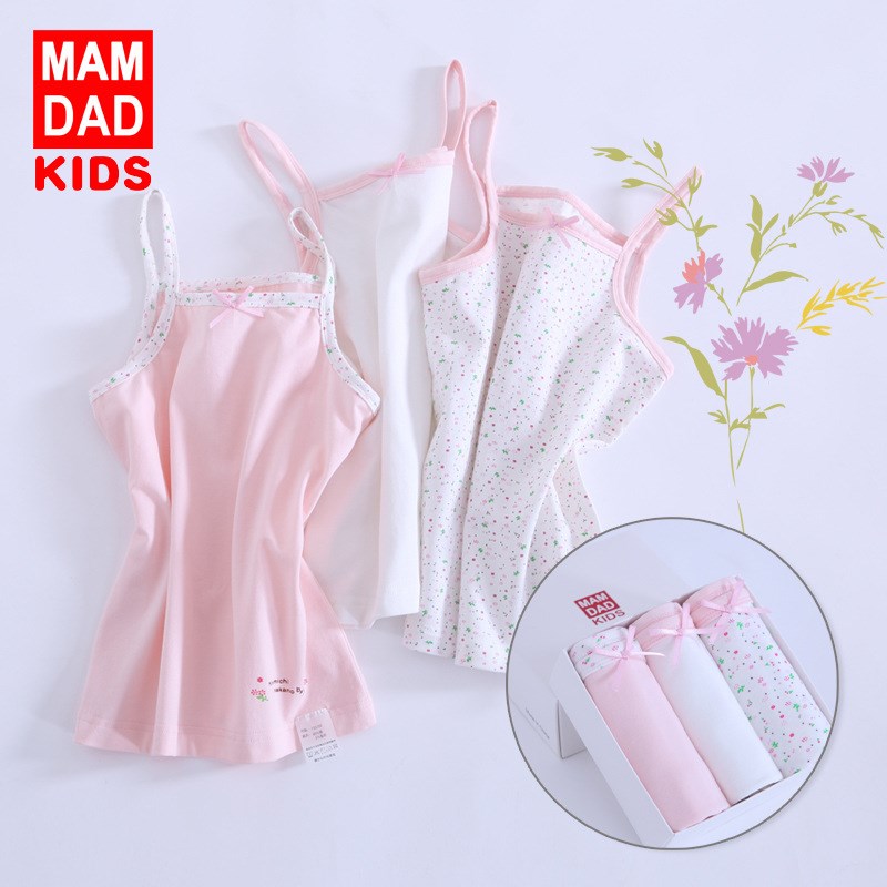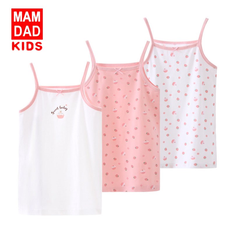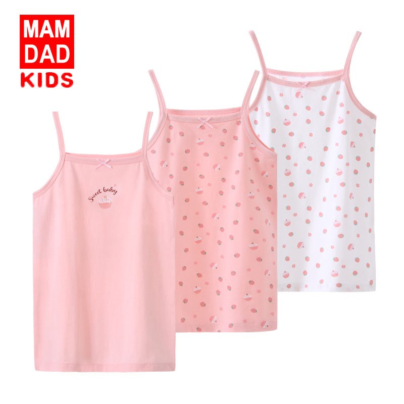 KIDS MAM&DAD爸妈亲 儿童吊带背心女三件装女童吊带背心A类纯棉夏季中大童婴儿宝宝打底衫内衣86420(86418)