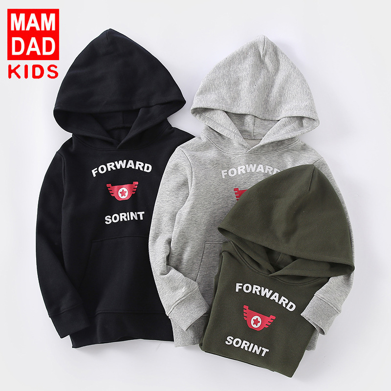 KIDS MAM&DAD 爸妈亲儿童连帽卫衣男童秋装新款韩版帽衫上衣重中大童外穿衣服潮14011