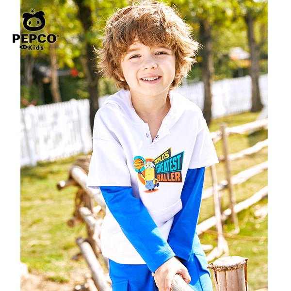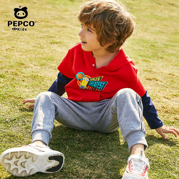小猪班纳童装男童卫衣假两件春季新款小黄人儿童连帽长袖恤潮 250156032