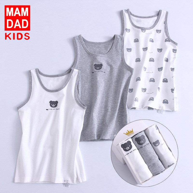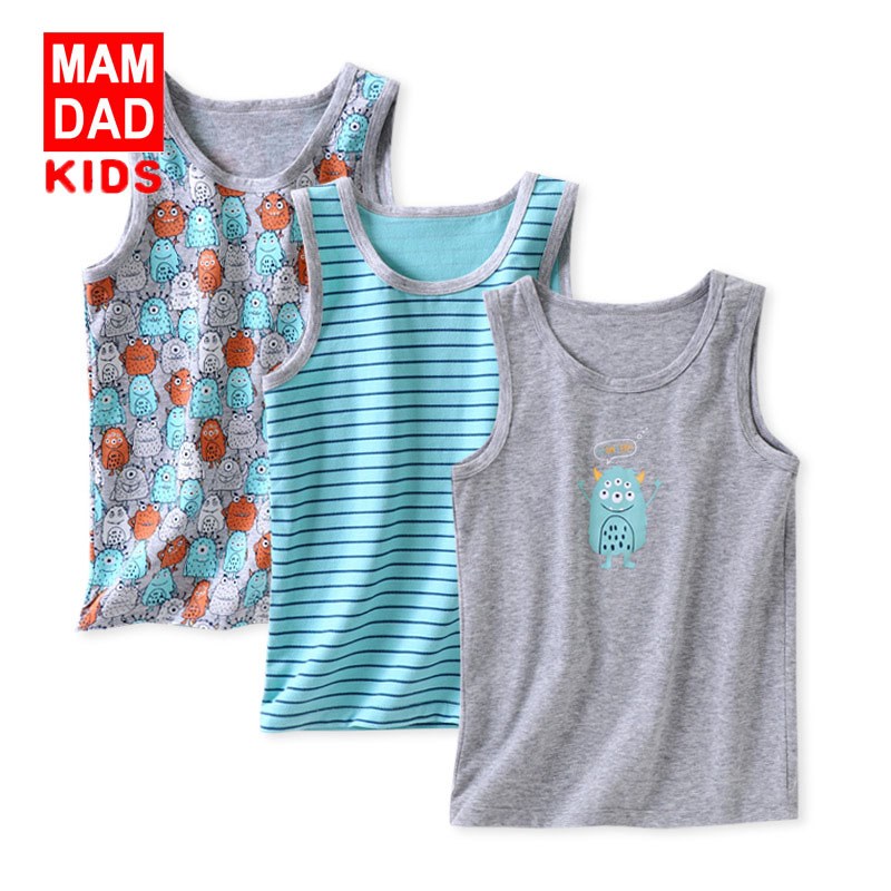 KIDS MAM&DAD爸妈亲3件装男童背心春夏小男孩休闲棉质儿童内衣背心86400(00133)