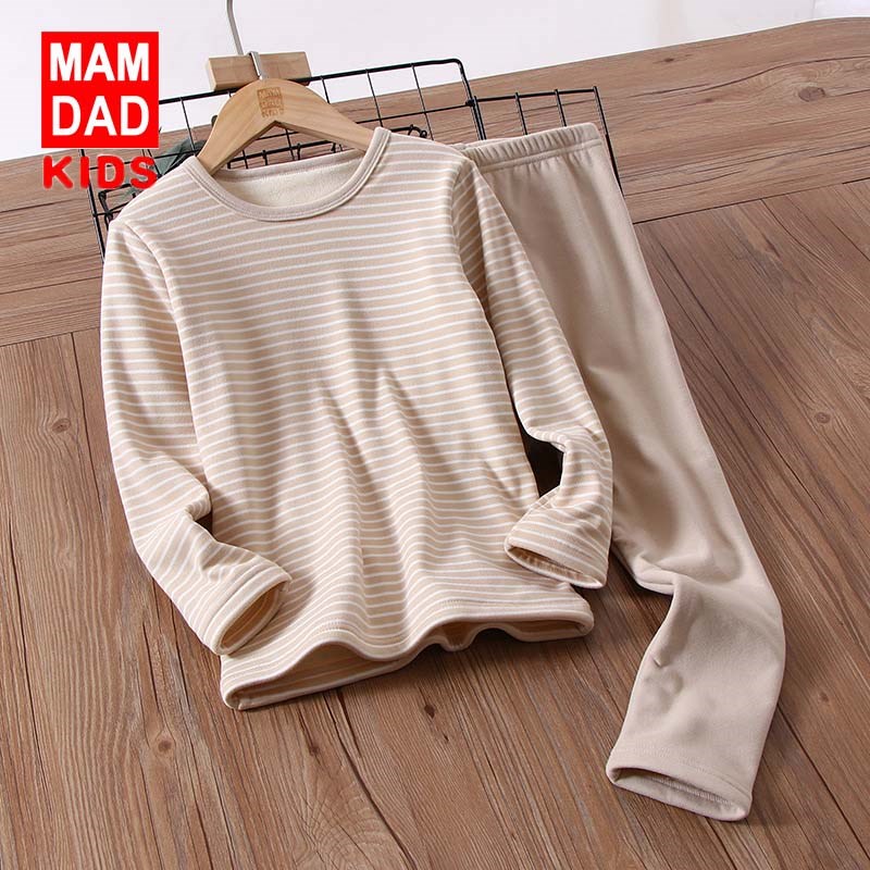 KIDS MAM&DAD 爸妈亲儿童保暖套装秋衣秋裤男童女童加绒加厚内衣套装秋冬保暖衣10225