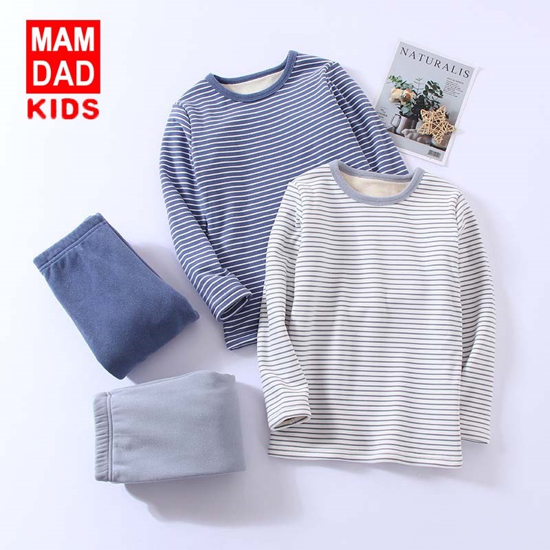 KIDS MAM&DAD 爸妈亲儿童双面磨毛加绒内衣套装秋冬加厚保暖衣中大童秋衣秋裤套装 86282(00236)