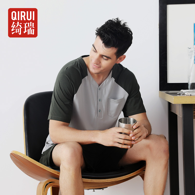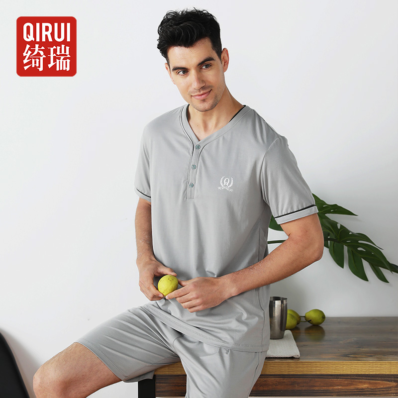 绮瑞夏季莫代尔男睡衣短袖棉质薄款休闲简约套装男士可外穿家居服QH55817