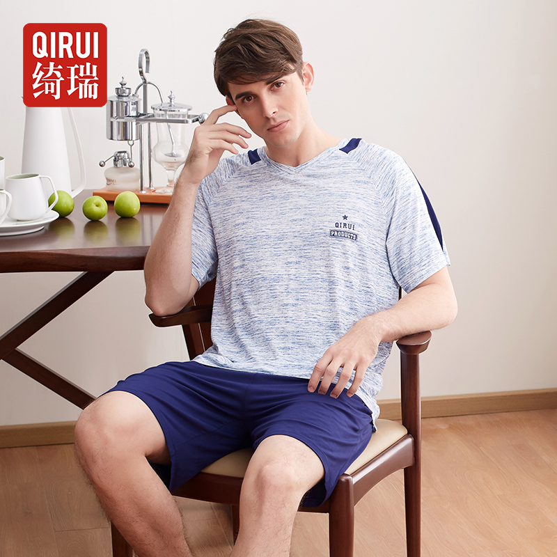 绮瑞夏季男士睡衣莫代尔短袖休闲套装薄款宽松棉质运动家居服男夏QI55021
