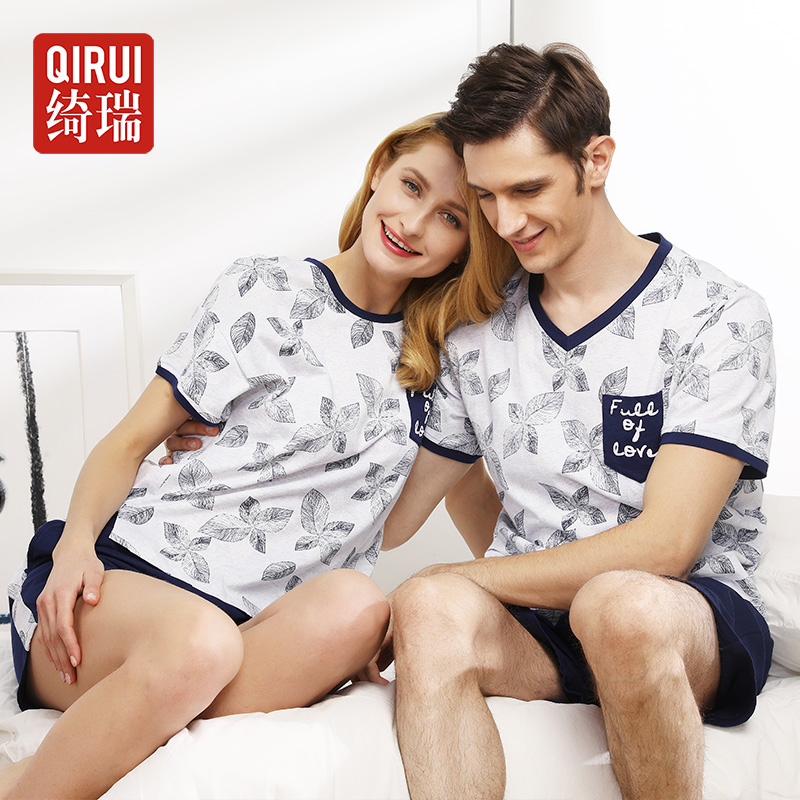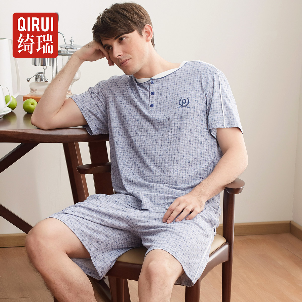 绮瑞男士夏季纯棉睡衣短袖短裤薄款加大码家居服全棉男夏运动套装QJ53056