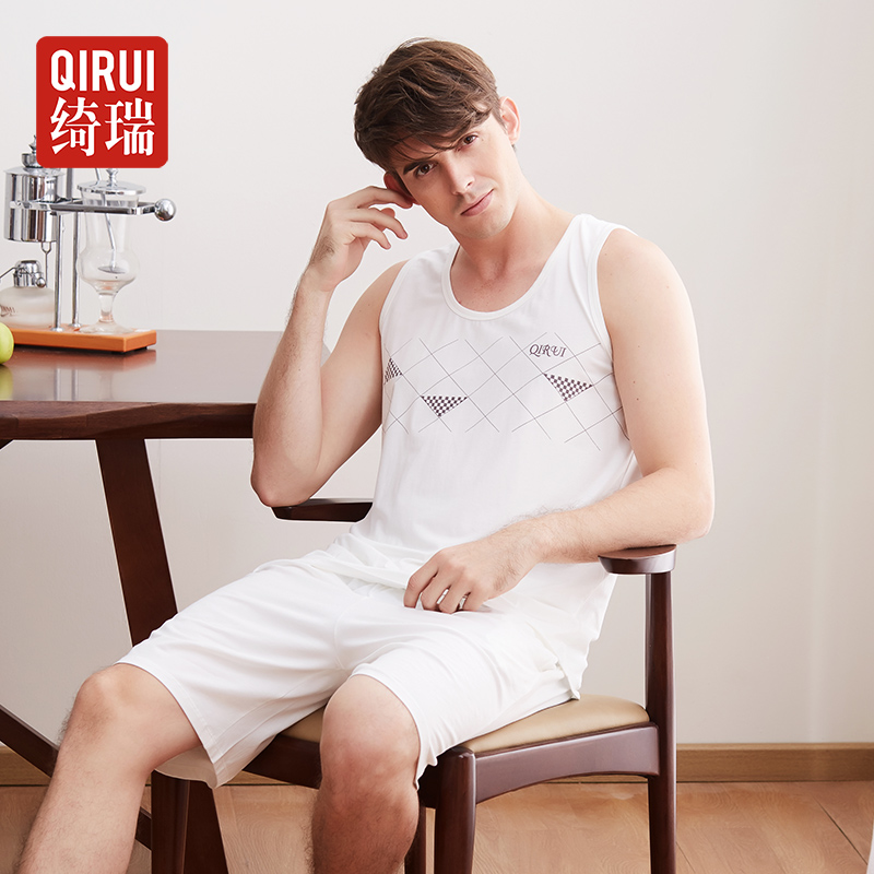 绮瑞夏季男士睡衣莫代尔棉背心薄款运动休闲套装青年可外穿家居服QH55818