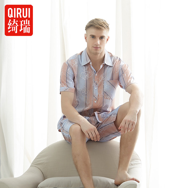 绮瑞睡衣男士夏季莫代尔棉短袖短裤家居服男夏薄款宽松加大码套装QJ55067