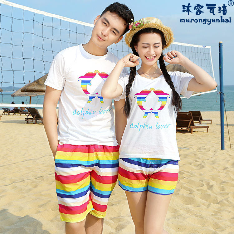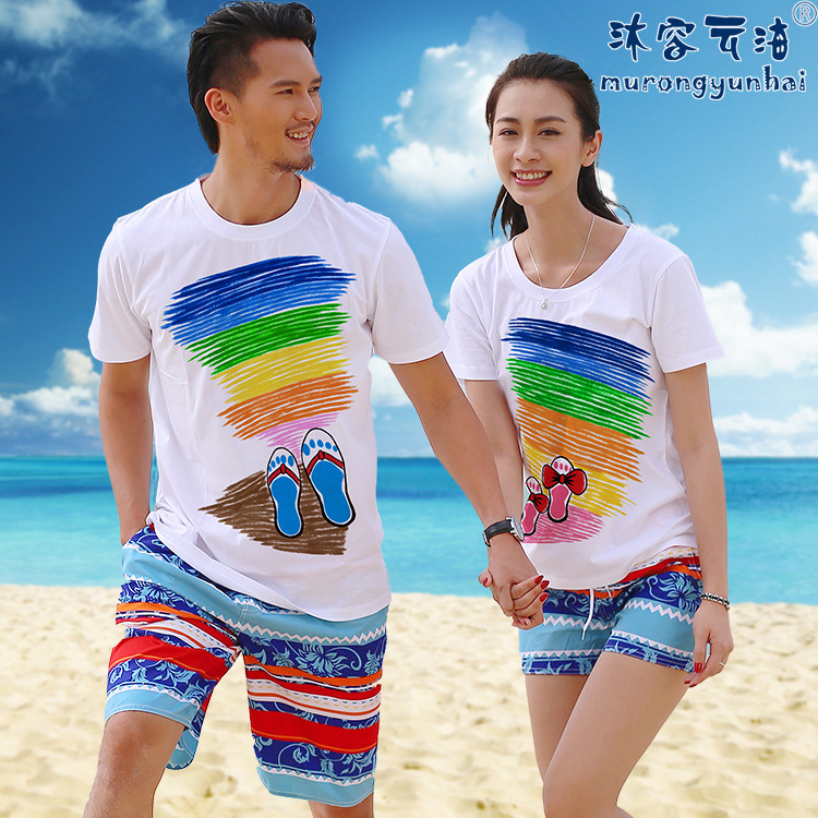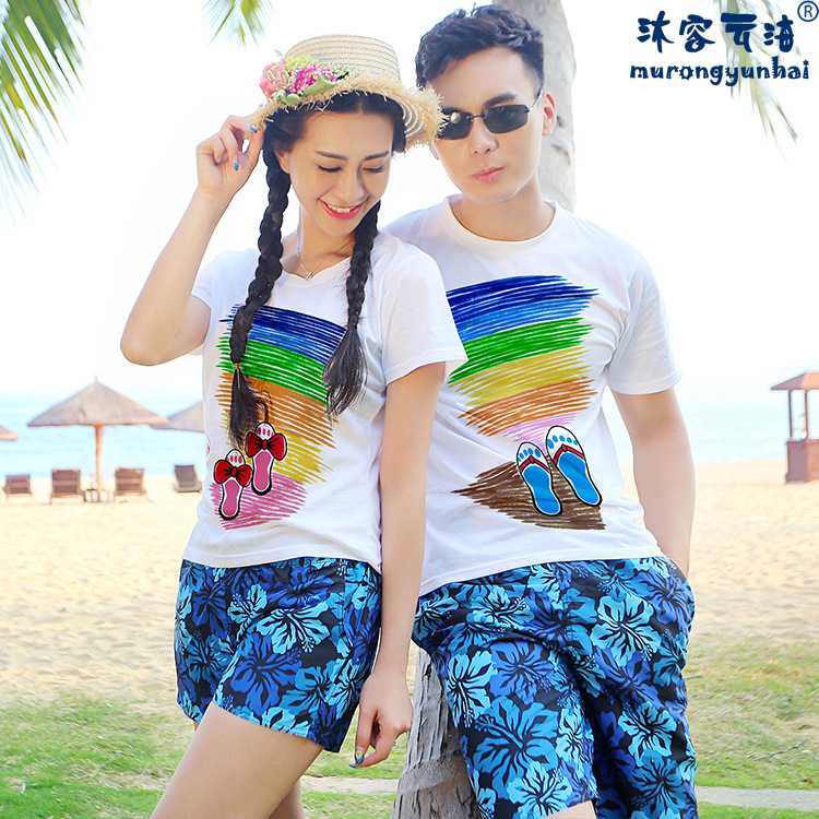 沐容云海情侣沙滩装纯棉韩版T恤速干沙滩裤海边度假蜜月Q1702-T029