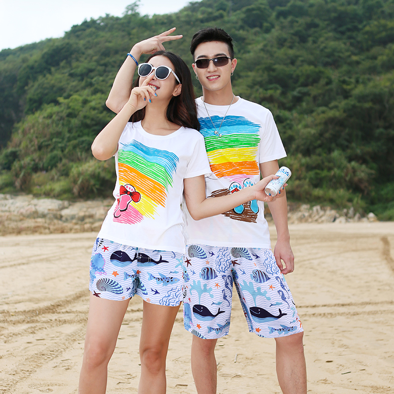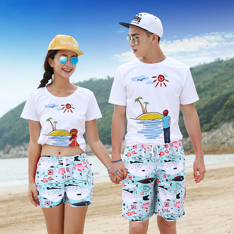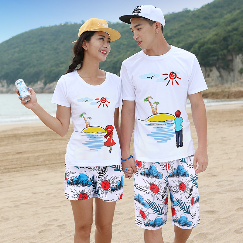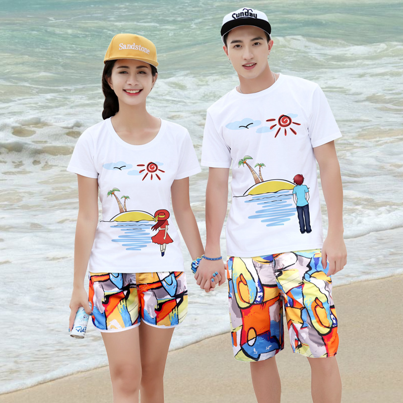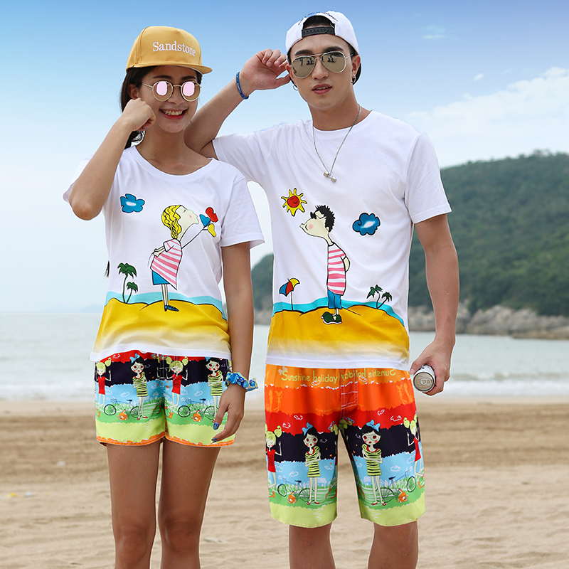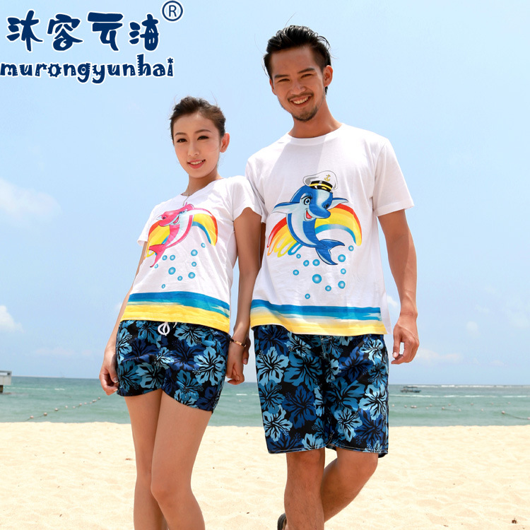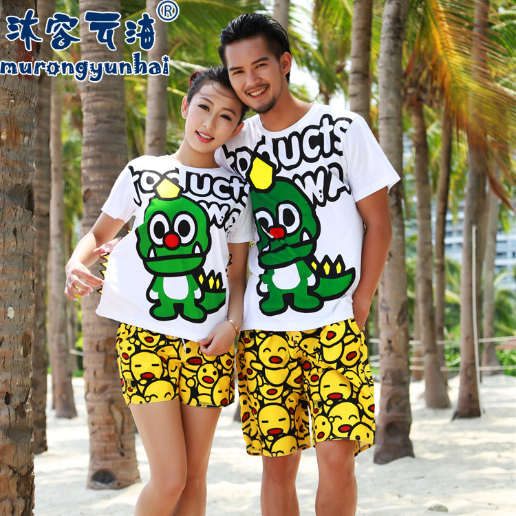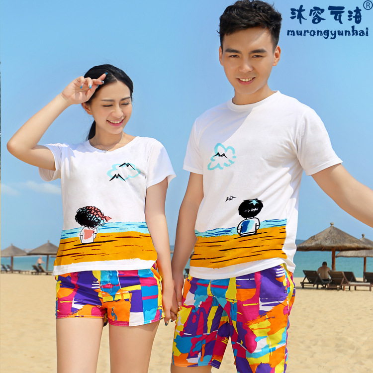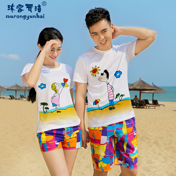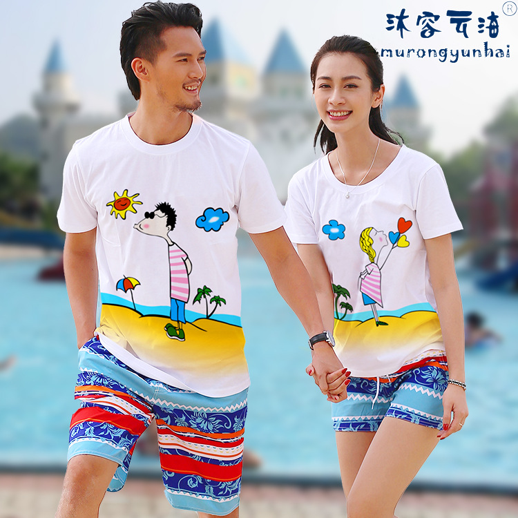 沐容云海情侣沙滩装纯棉卡通T恤速干沙滩裤海边度假蜜月Q1407-T003