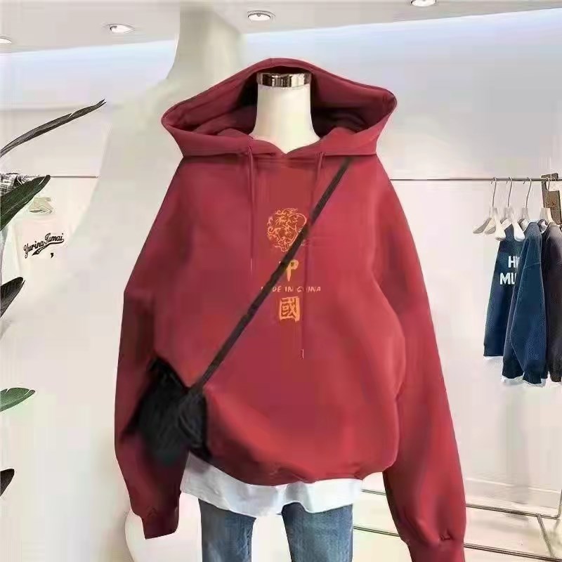 平色2021秋冬新款中国风网红印花加绒加厚宽松潮连帽卫衣女PSD2102