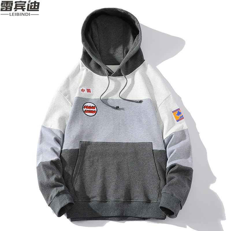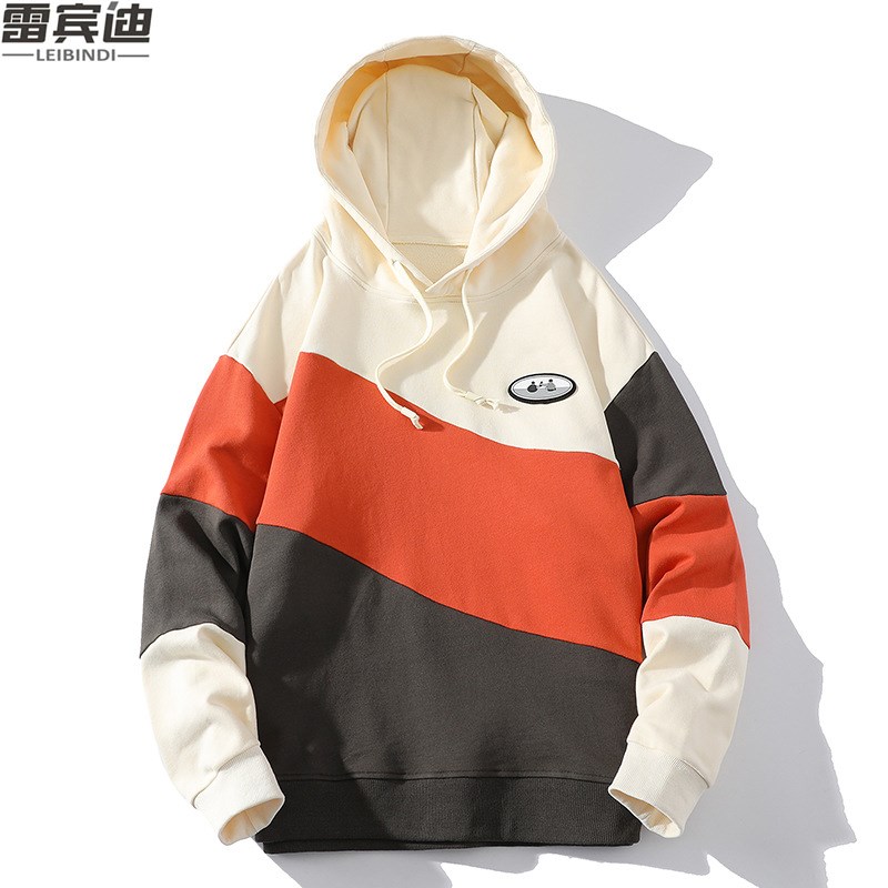 LEIBIDI/雷宾迪连帽拼色上衣情侣宽松港风套头卫衣男EY-3536