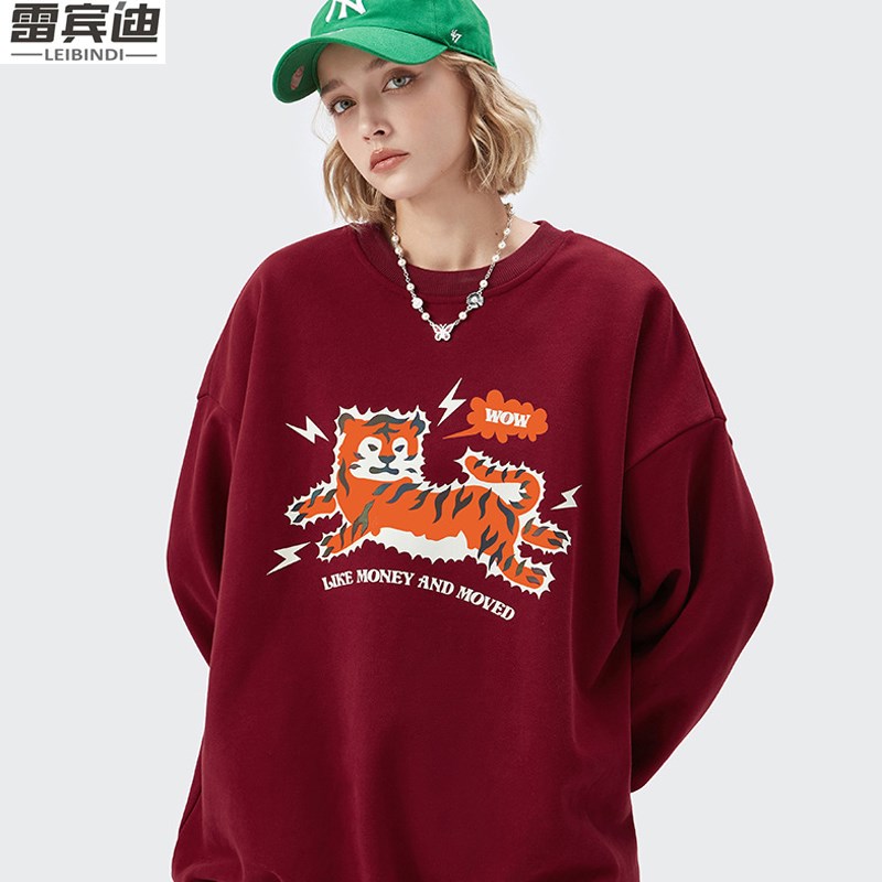 LEIBIDI/雷宾迪虎年镭射反光宽松毛圈卡通圆领女士卫衣6868S22