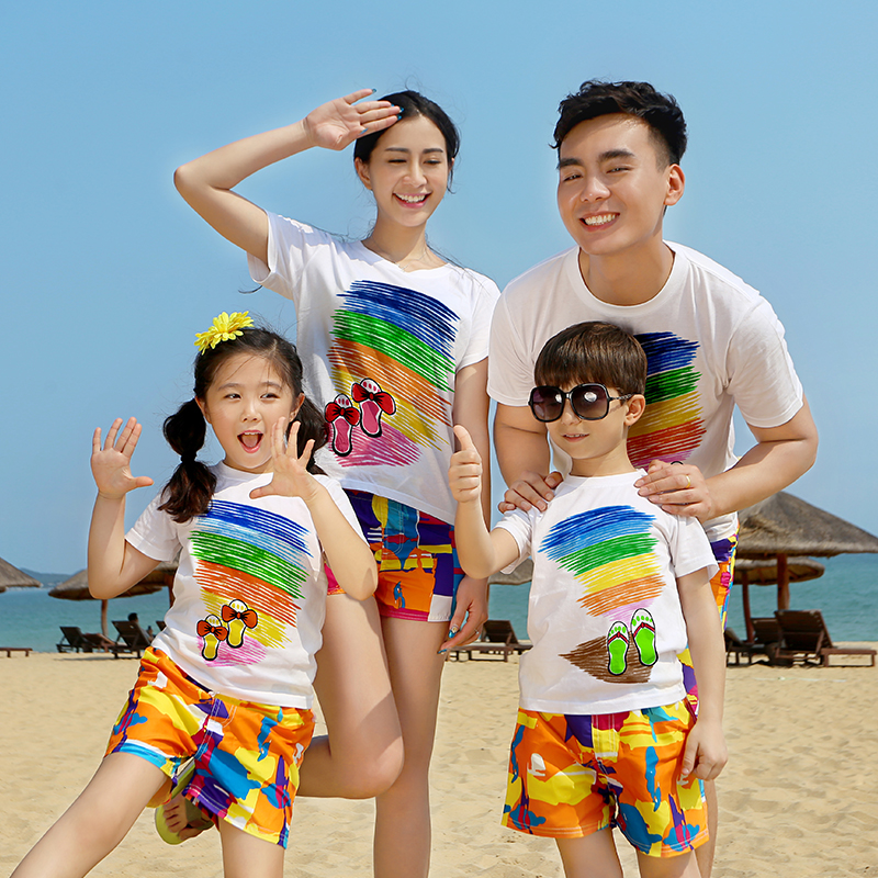 沐容云海亲子家庭装一家三口旅游度假亲子沙滩裤速干父子母女沙滩短裤宽松1407-T004
