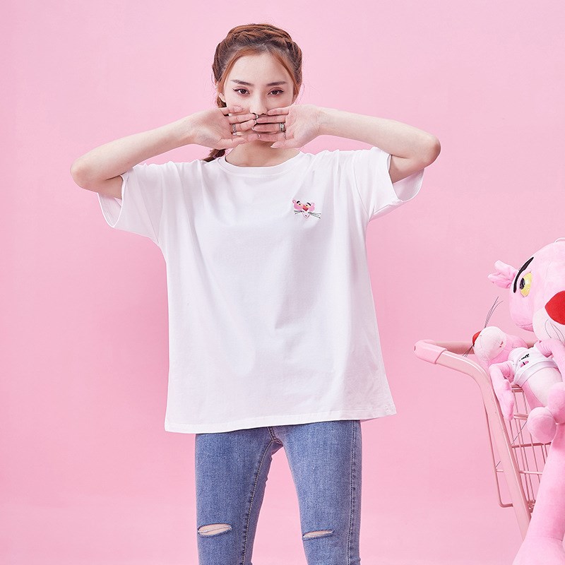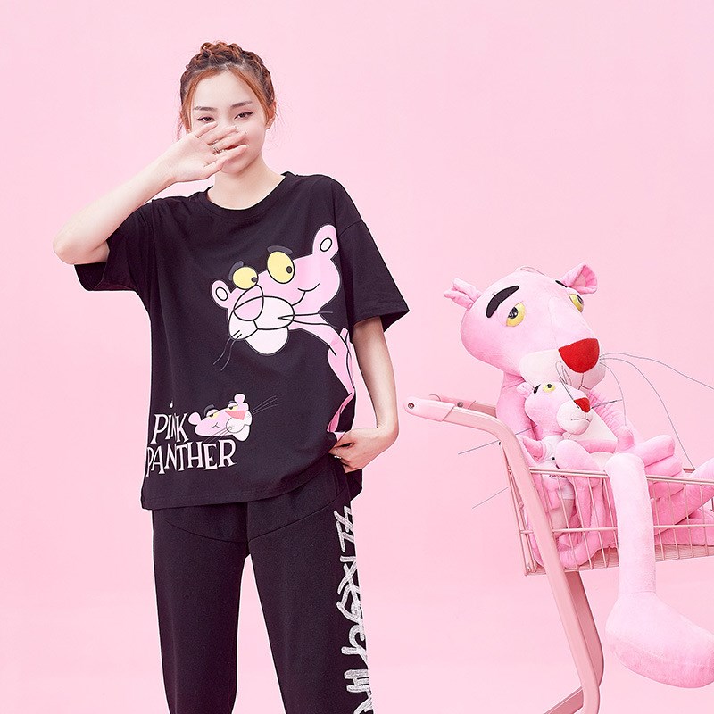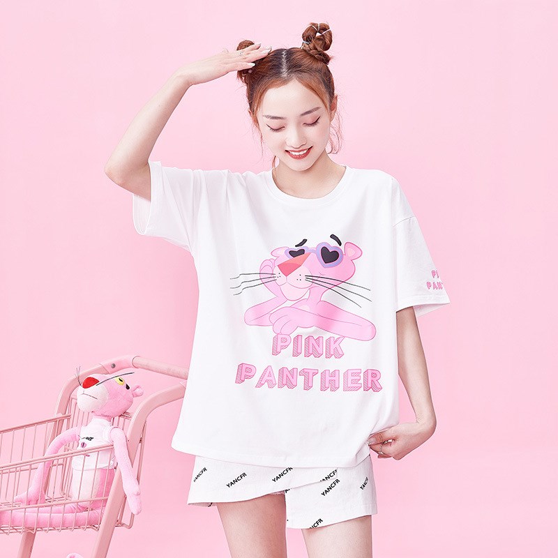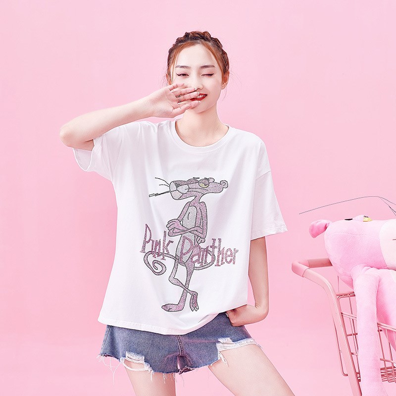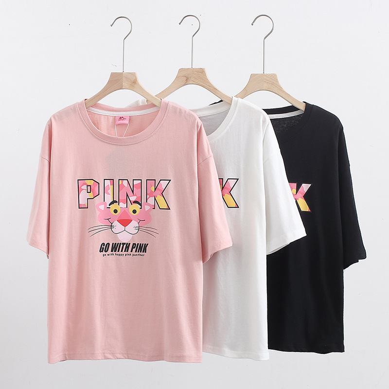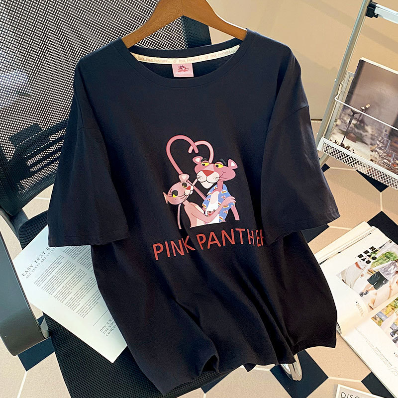 成人可穿夏季女生圆领短袖T恤粉红豹宽松大码女士短袖t恤FHB11015