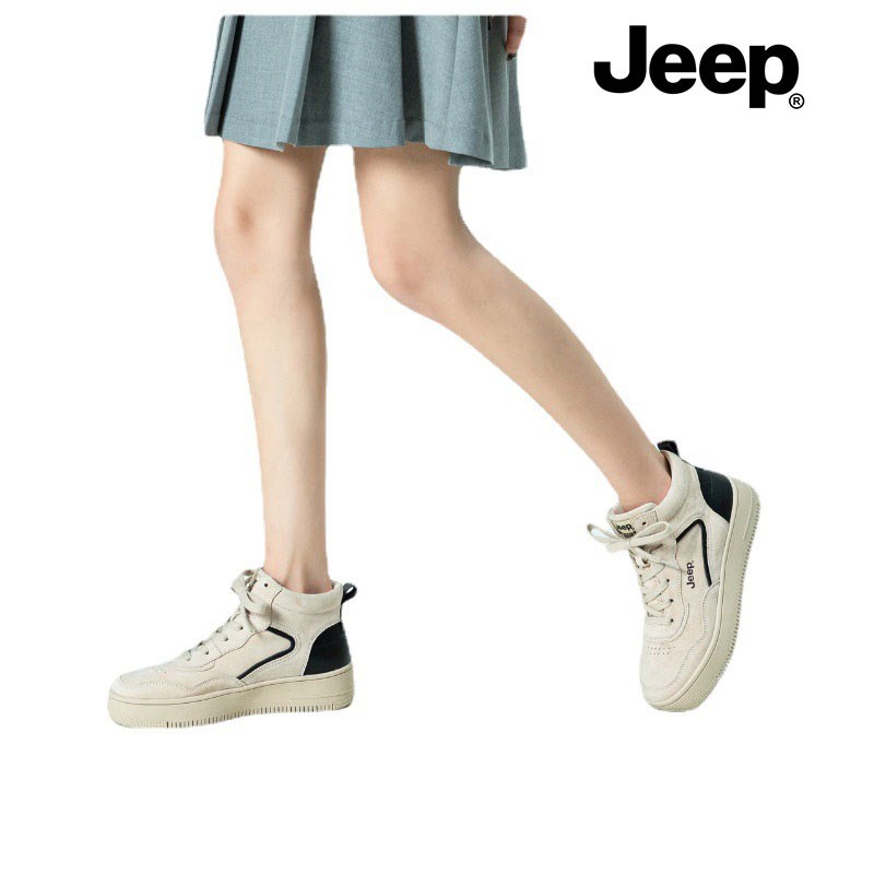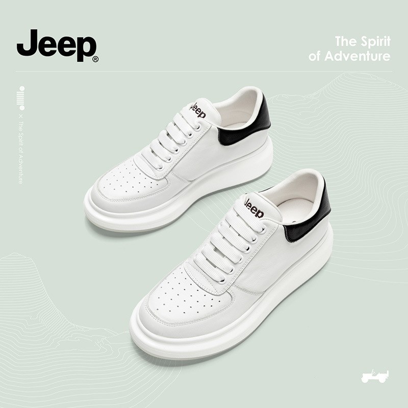 JEEP 春秋季新款白色板鞋女透气松糕单鞋厚底 百搭潮流女鞋 PZ221WAS368