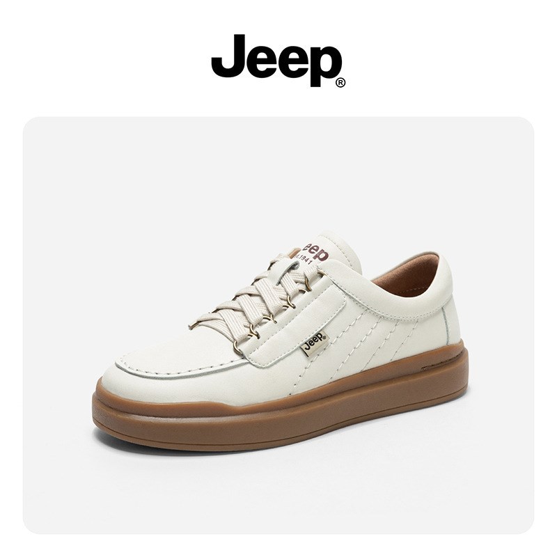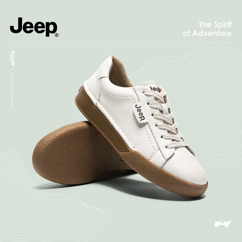 JEEP 休闲运动板鞋女士春秋季商场新款百搭牛皮透气小白鞋 PI221WAS421