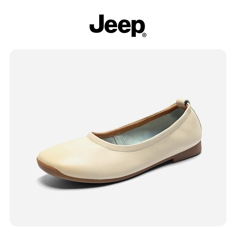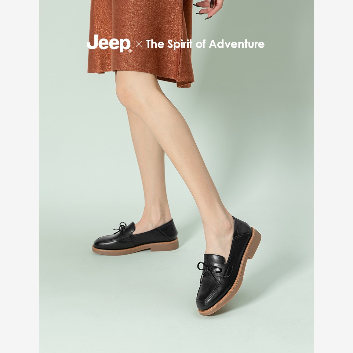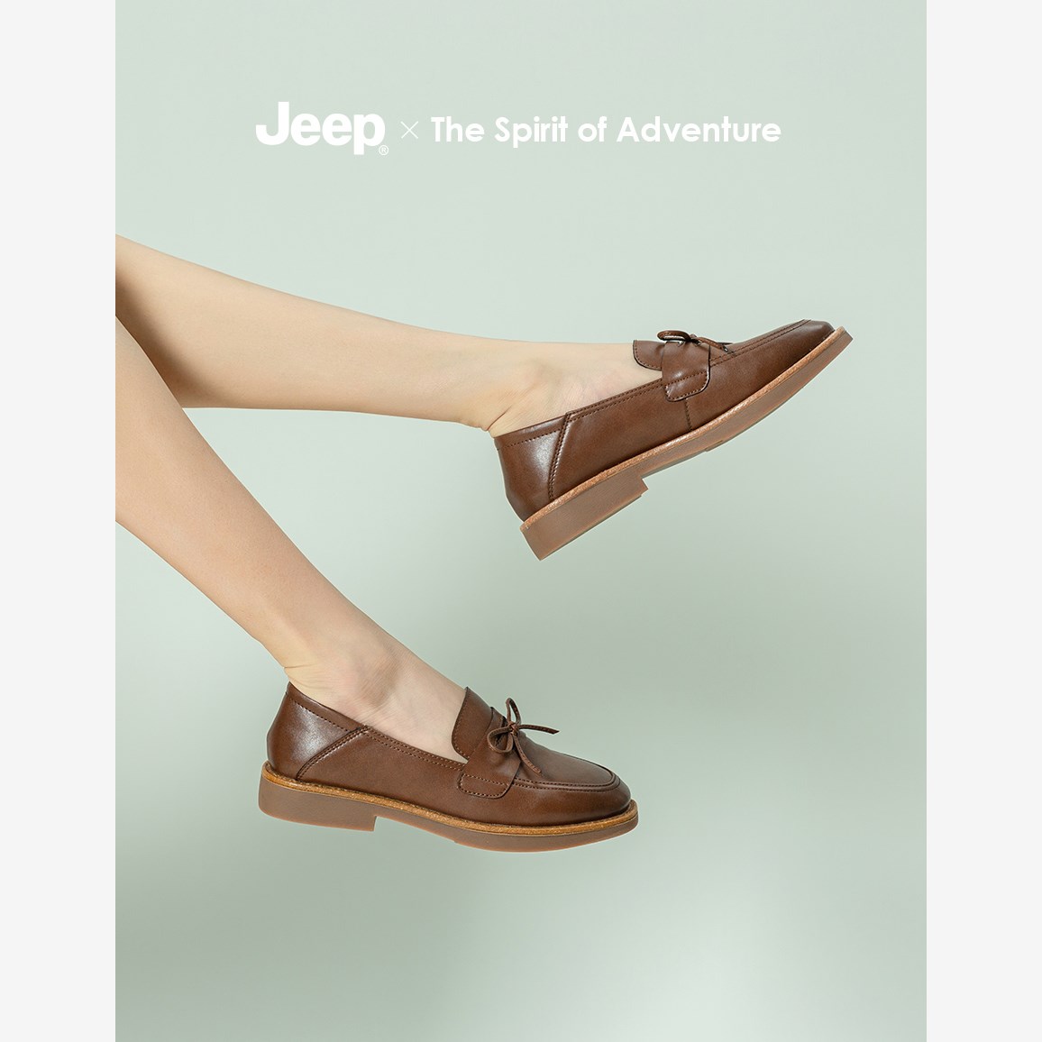 JEEP 秋季新款浅口蝴蝶结真皮一脚蹬耐磨女士平底皮鞋PD213WAS300